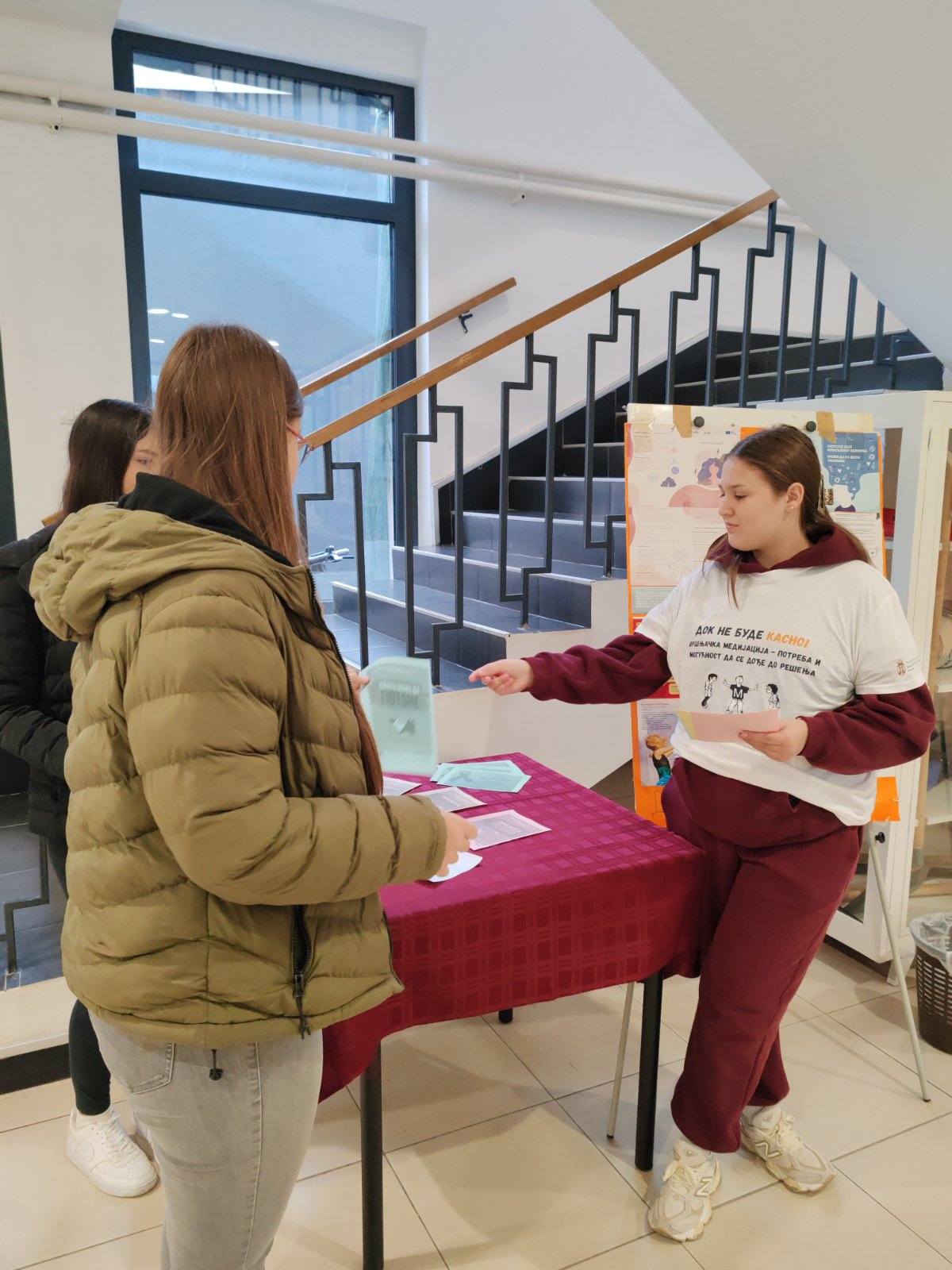 У Техничкој школи обележен је дан менталног здрављаДатум: 10. Oktobar 2025 13:05 Категорија: 2025Данас је у Техничкој школи Деспотовац у Деспотовцу обележен Дан менталног здравља. Током дугог одмора, вршњачка медијаторка Исидора Ет11 је делила штампани материјал ученицима. |